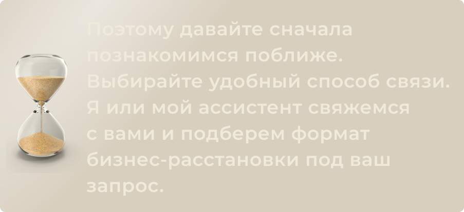 Вас ждет 8 недель работы, 6 встреч и поддержка на протяжении всей работы (коррекция действий и работа над ошибками, ответы на возникающие вопросы).