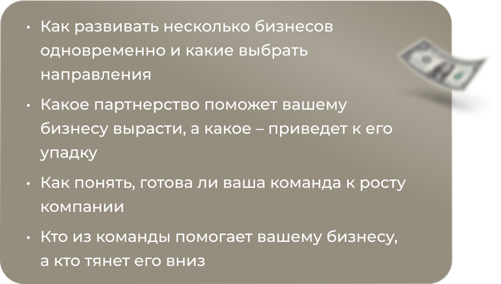 ● на каком участке есть лишние траты и как можно их сократить; ● какие вложения жизненно необходимы для развития компании; ● как правильно реорганизовать команду (каких единиц не хватает для работы, а какие из имеющихся – лишние); ● как повысить эффективность процессов; ● какие из процессов компании требуют большего внимания.
