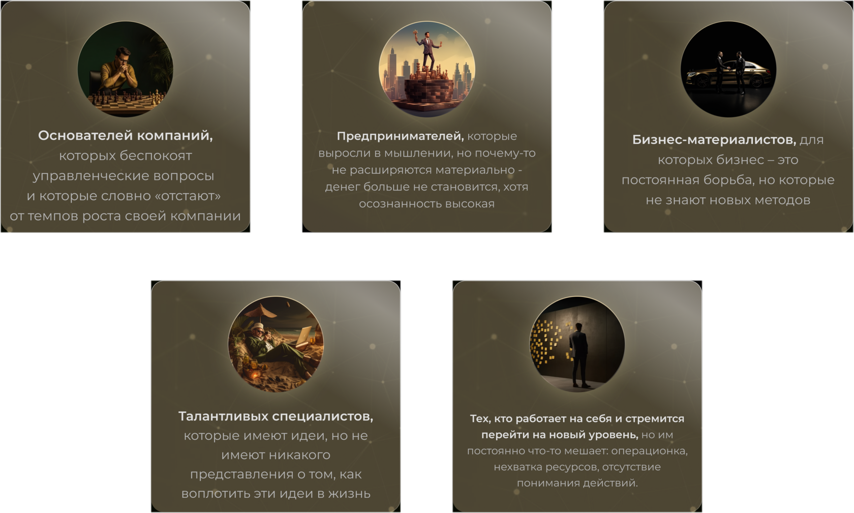 ● реорганизация и структурные изменения в компании; ● открытие новых направлений деятельности компании; ● закрытие какого-то участка; ● партнерство: как выбрать партнера или как выйти из партнерства; ● слияния и поглощения ● вопросы безопасности и выявление «крыс на корабле» ● повышение эффективности работы определенной сферы (HR, маркетинг и другие) - требуется участие линейного персонала ● выявления слабых точек - требуется участие линейного персонала.