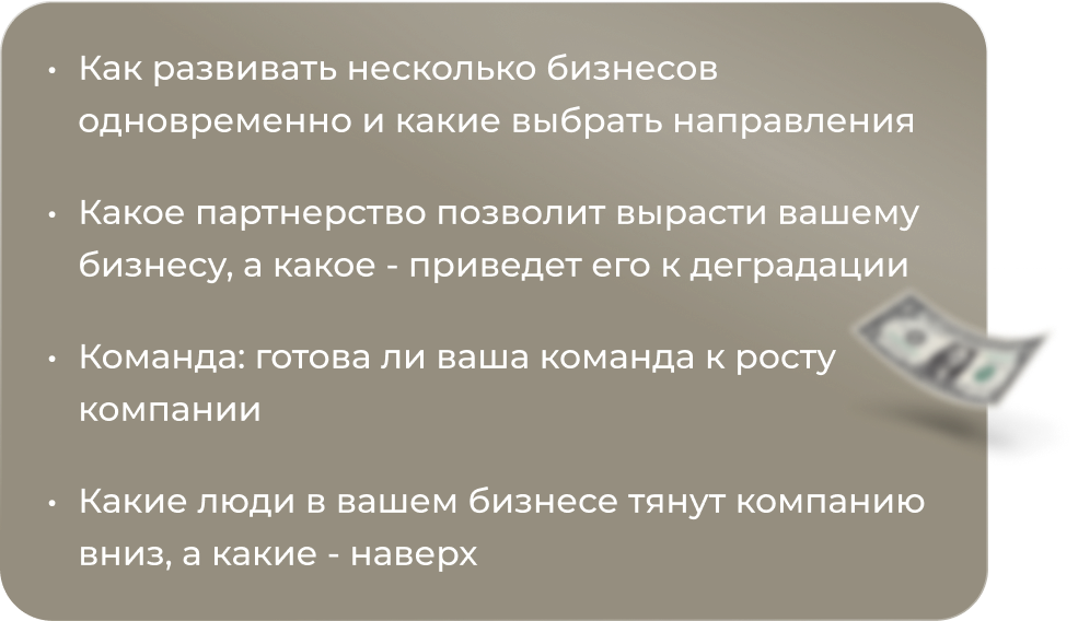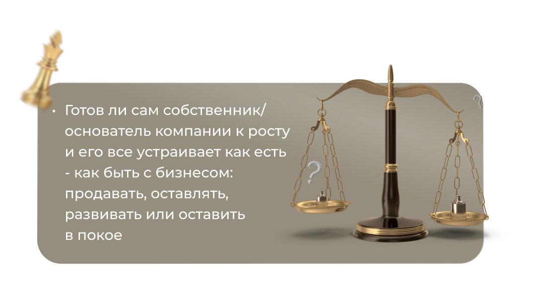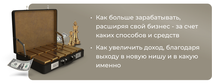 ● на каком участке есть лишние траты и как можно их сократить; ● какие вложения жизненно необходимы для развития компании; ● как правильно реорганизовать команду (каких единиц не хватает для работы, а какие из имеющихся – лишние); ● как повысить эффективность процессов; ● какие из процессов компании требуют большего внимания.