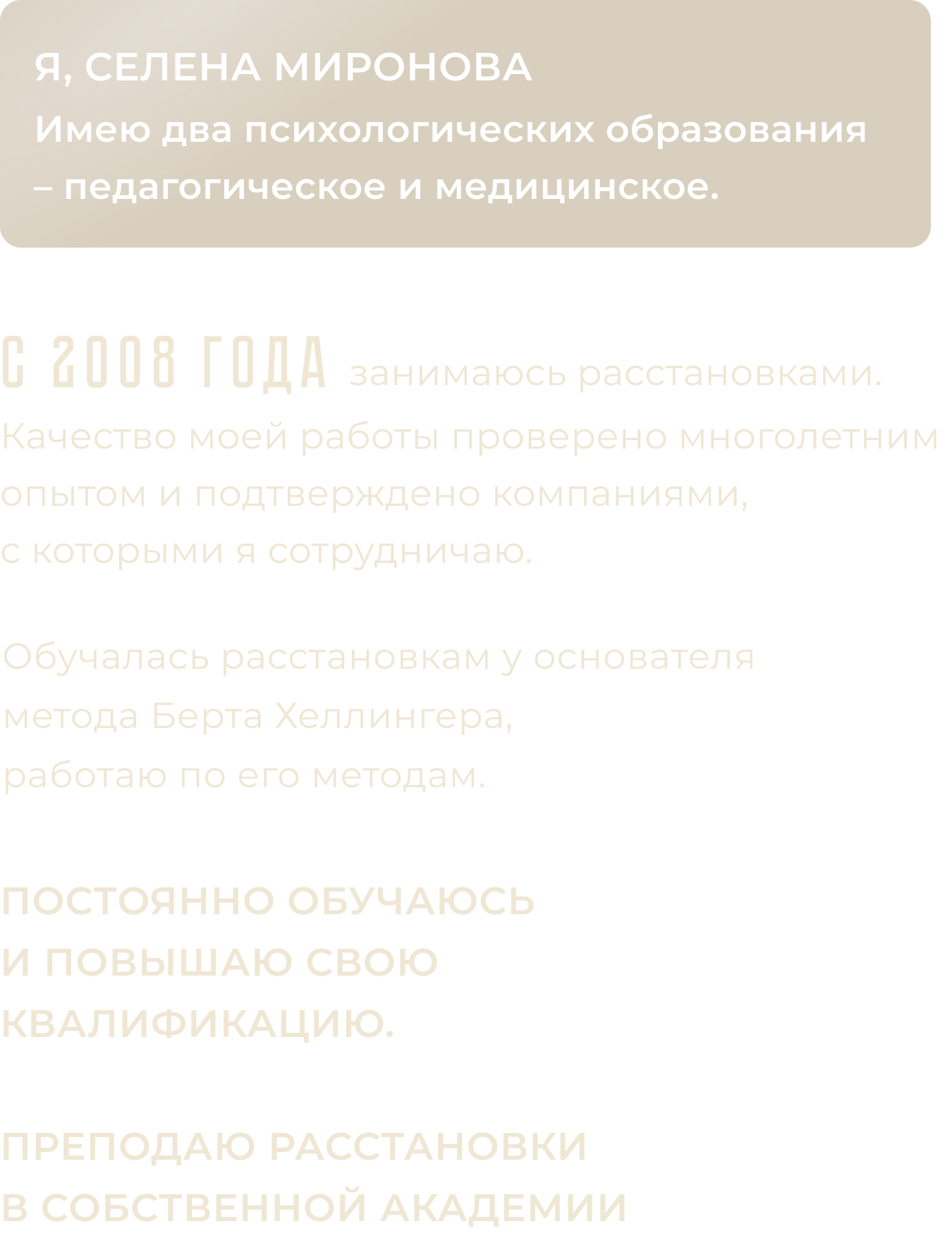 Расстановка дает возможность почувствовать целостность компании и единение внутри нее.