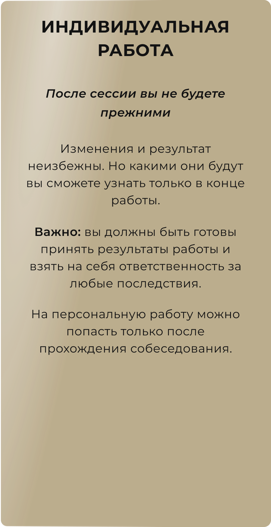 Индивидуальная работа – это ваш шанс избавиться от ощущения, что вы проживаете не свою жизнь!