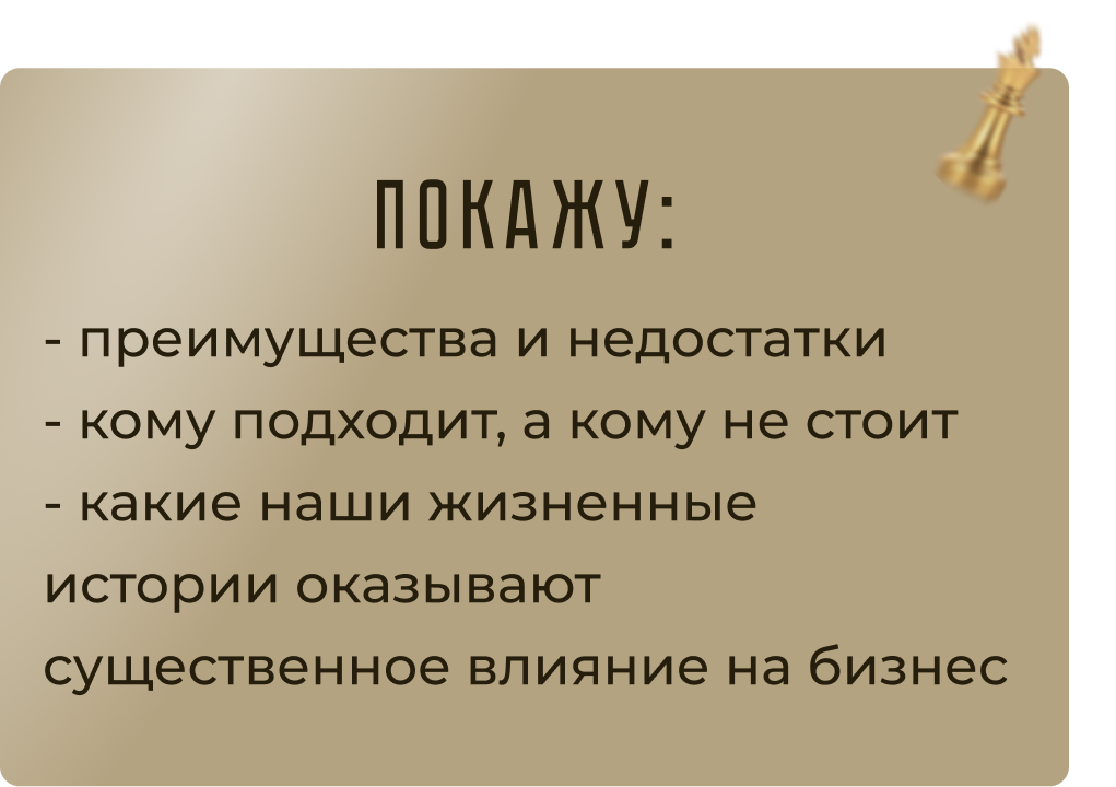 Вас ждет 8 недель работы, 6 встреч и поддержка на протяжении всей работы (коррекция действий и работа над ошибками, ответы на возникающие вопросы).